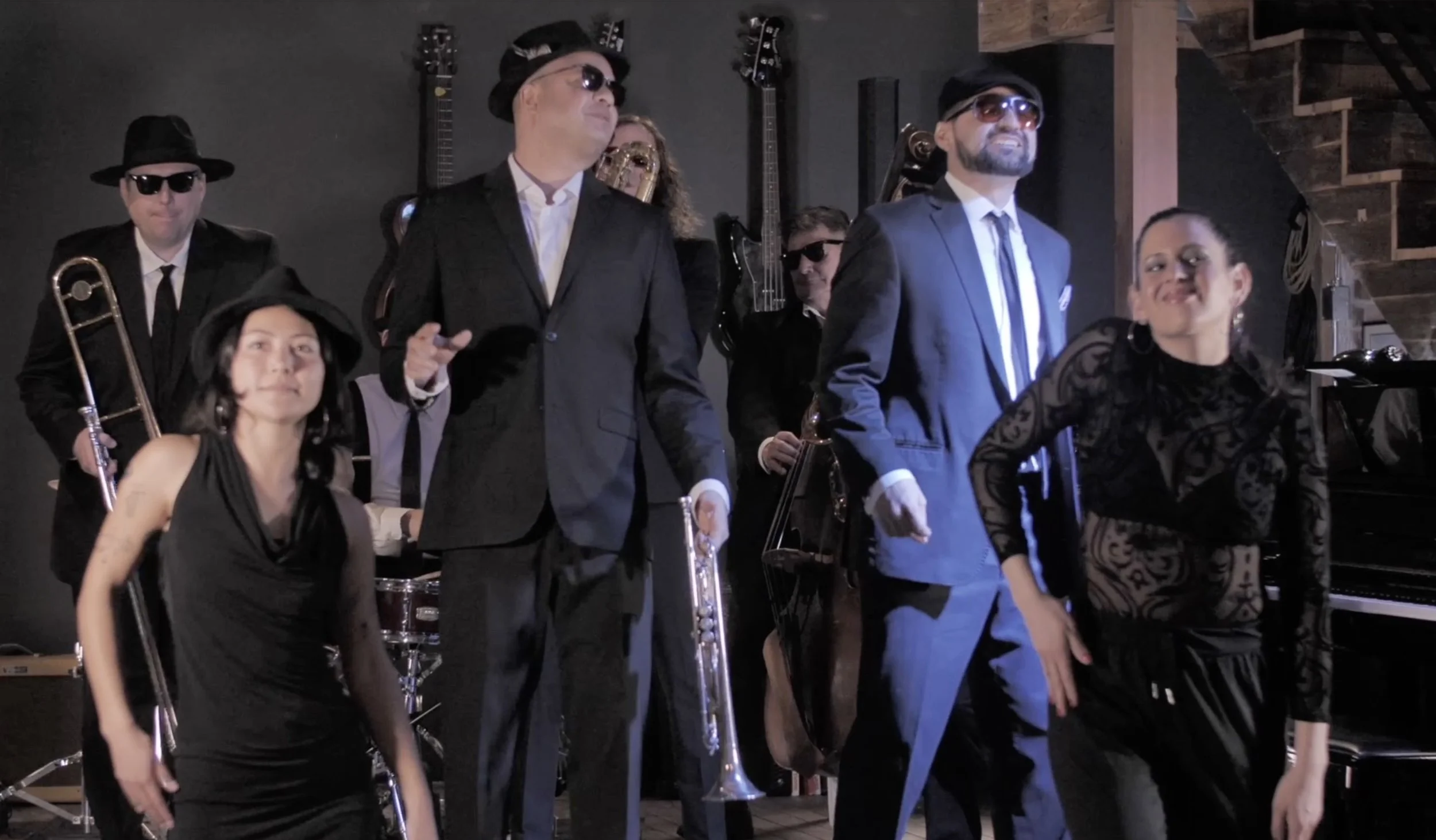 with a trumpet fanfare and vocals by Cameron Washington and Jairo Vargas, who also supplies the jivey